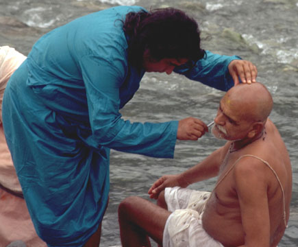 Photo by Emam PREFACE TO THE ENGLISH EDITION " 'Awake! Arise! Go to the wise and seek to learn from them.' In His later addresses Sri Babaji often quoted these lines from the Vedas, without the devotees realizing how soon such a situation might present itself. Sri Mahaprabhuji, the Great Lord - as Babaji was known to those near Him - was everything the seeker of the divine, of truth, of a fully incarnated living presence of supreme spiritual and practical wisdom, could hope to find within a lifetime. "When Shri Babaji left His body in February 1984, there was the heritage of his spoken word as well as the grace of wisdom of those few whom he had kept really close. "Shri Shastriji was such a person. He had said of himself that he 'followed Babaji like a shadow,' accompanying Him on his many journeys through India in his function as chief priest, celebrating the ancient Vedic ritual of the Yajna, fire offering, in hundreds of places. "Shri Shastriji was a prolific writer, Sanskrit scholar of repute and was one of Mahendra Baba's closest disciples, who already two decades earlier had prophesied Babaji's incarnation as the Lord of Lords and world-teacher. During his discipleship with Mahendra Baba, Shastriji had received a profound preparation to recognize and serve the Lord in His thirteen-year sojourn on earth. In fact, he had written most of his works in mantric verse on Hairakhan Baba many years before His physical appearance in 1970. "When asked, Shastriji emphasizes that whatever he has written was 'by the grace of my master and by direct inspiration of the Lord Himself... I am merely a writing instrument.' "Whenever Babaji gave His short, informal talks at His ashram in Hairakhan, at the Himalayan foothills, Shastriji would be asked by Him to repeat His every word before they were translated into English. Shastriji was the mouthpiece of Him whose coming he had helped to prepare with his writings, and when He had come, Shastriji was the one who put across through the spoken word, to the many thousands who came, the timeless wisdom of the sanatana dharma. "Babaji would often mention the power of mantras, encouraging many to learn Sanskrit which, He said, would before long regain its original importance as the language of prayer. "All souls come from Brahman, the Absolute Being, to which, eventually, they return. In this context the sanatana dharma teaches that the soul, in the course of its evolution, takes birth in countless species and is pushed forward by the force of desire, which is at the root of its evolutionary pattern. "These desires may be on a divine or causal, mental or subtle and gross, material level. On all levels, unfulfilled desires and events determine the pattern of individual life and the course of history. To fulfill these desires, as the root of all attachment, to remove the obstacles which fetter the soul on its journey through endless life to cure the physical, mental-emotional and spiritual sufferings, God's or the gods' help is sought. It is, however, only the highest consciousness, visualized as the supreme godhead that can disentangle the knot of cause and effect and give liberation. "Above all the gods who come and go in the consciousness of man through the rise and fall of civilization, in the abode of infinite space, in absolute peace where time is no more, there resides the Great Mother of all creation, one with Her Lord, the Supreme Spirit, Sambasadashiva Eternal Lord Shiva one with the Goddess Mother Amba. To Her/Him are dedicated the verses of this book. "The Great Goddess, matrix and creatrix of all that is, takes as many forms, or aspects of manifestation, as the human mind can conceive Within and without, it is always She who weaves the patterns of all life, as the divine force behind everything perceived by the senses. "It is in Her honor and to glorify Her many names who - in Sanskrit - are her substance, that this work has been written: 'I am Her who resides in the Lotus of the Lord's Heart.' "May our prayers to the indwelling life-force in all that is keep us close to Her/Him who is mother, father, brother, and best friend, all knowledge and riches - who is all." -Malti |