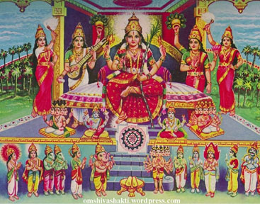 Collage by Mahalakshmi 34. Muktabhushitasarvangabhushite parameshwari. Navavidrumavarnadhye, dhyeyarupe namo namah. 34. O Highest Queen, on every limb, You are bedecked with pearls. We bow to and we meditate on You, appearing in the color of new corals. 35. Jaya sarvagate durge, namastripurasundari. Shabdabrahmamayi matar, vakyasiddhim, prayaccha me. 35. Victory to You, All-pervading Durga, We bow to You Tripurasundari. You are the Very Word of God; Grant that my speech is always one with Truth. 36. Madam churnaya shatrunam chandike darpanashini. Arinam hridayam bhindhi, shulagrena tarasvini. 36. O grind the enemies'* arrogance into the dust and break their pride, O Mother Chandika. O Valient Devi, pierce Your prong right through the enemies' heart. *Enemies are lust, anger, ego, avarice, delusion, jealousy |