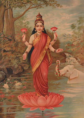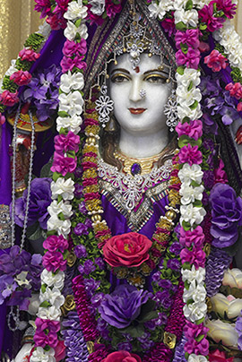 Photo by Mahalakshmi 28. Vanchakalpalate divye, kadambakusumapriye. Mohini twam mahamaye, maheshvari namo namah. 28. You are the tender wish-fulfilling tree and You are fond of the Kadamba flower. Your magic veil conceals the Truth beyond illusion; Consort of Shiva, Glory be to You! 29. Daridryadainyashamani, padmaragamanipriye. Purne vishwambharishani, annapurne namostute. 29. You are alleviating pain and misery. The ruby is Your favorite amongst the gems. Obeisance to You Annapurna Ishani; You nourish and sustain the world with grain. 30. Namaste jagadanandadayini jagadambike. Kalpaprasunamalabhirbhushite varadayini. 30. We bow to You, O Mother Ambika, who fills the Universe with bliss. The garland of the wish-fulfilling flower adorns You, who is granting every wish. |
